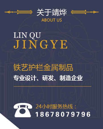 临朐县靖烨金属制品厂是一家专业从事桥梁护栏厂家、山东铝艺护栏、潍坊pvc护栏、潍坊铁艺大门的厂家。公司位于山东省潍坊市临朐县石佛工业园,主导锌钢护栏、铁艺护栏、铝艺大门、道路护栏、百叶窗、铁艺门楼、锌钢楼梯、电动伸缩门等各种护栏大门的设计,研发,制造及销售于一体的现代化生产企业。产品被广泛应用于建筑、航空、公路、铁路、公共场所、小区、等许多领域。